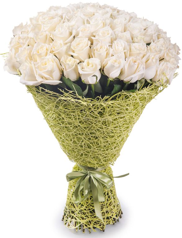 Нежнейшие цветы в букете из 51 белой розы в упаковке!
