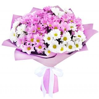 - Хризантема кустовая белая и розовых - 11 шт.