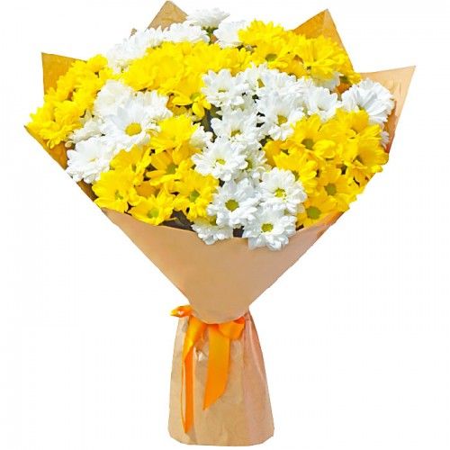 - Хризантема кустовая белая и желтая - 11 шт.