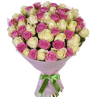 - Роза бело-розовая 70 см. - 49 шт.